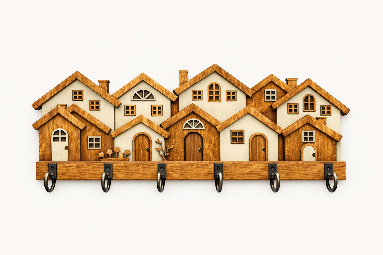 Handcrafted rowhouse key holders designed to bring charm and organization to your...