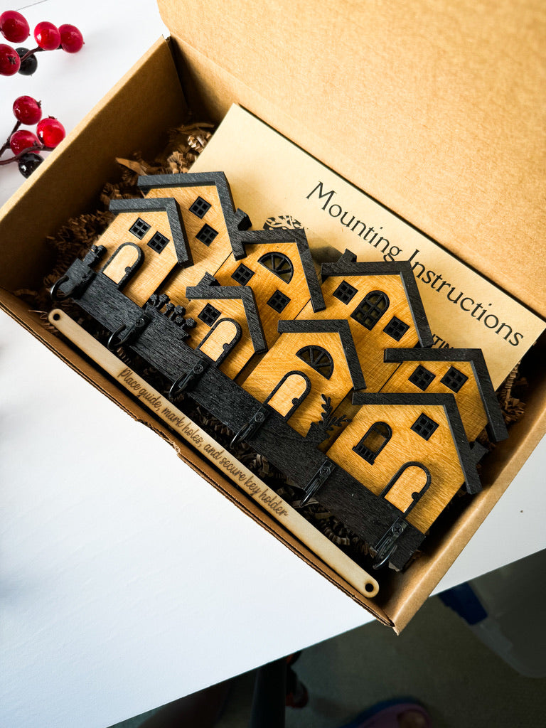 Aspen Rowhouse Key Holder – Wooden Wall Organizer with Hooks